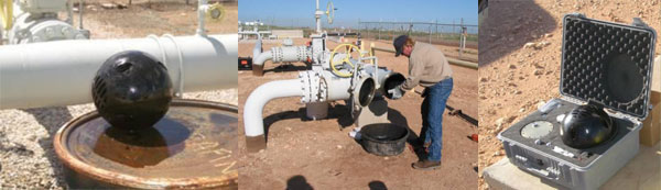 El SmartBall contiene un sistema propio de sensores acústicos para identificar hasta las pérdidas más pequeñas (< 0.5 gpm). Viaja a través de la cañería, detectando cualquier pérdida existente, por más pequeña que sea. Para ubicarla, se utilizan instrumentos estándar de detección de pigs, haciendo posible no sólo la detección sino también la localización exacta de cualquier pérdida.